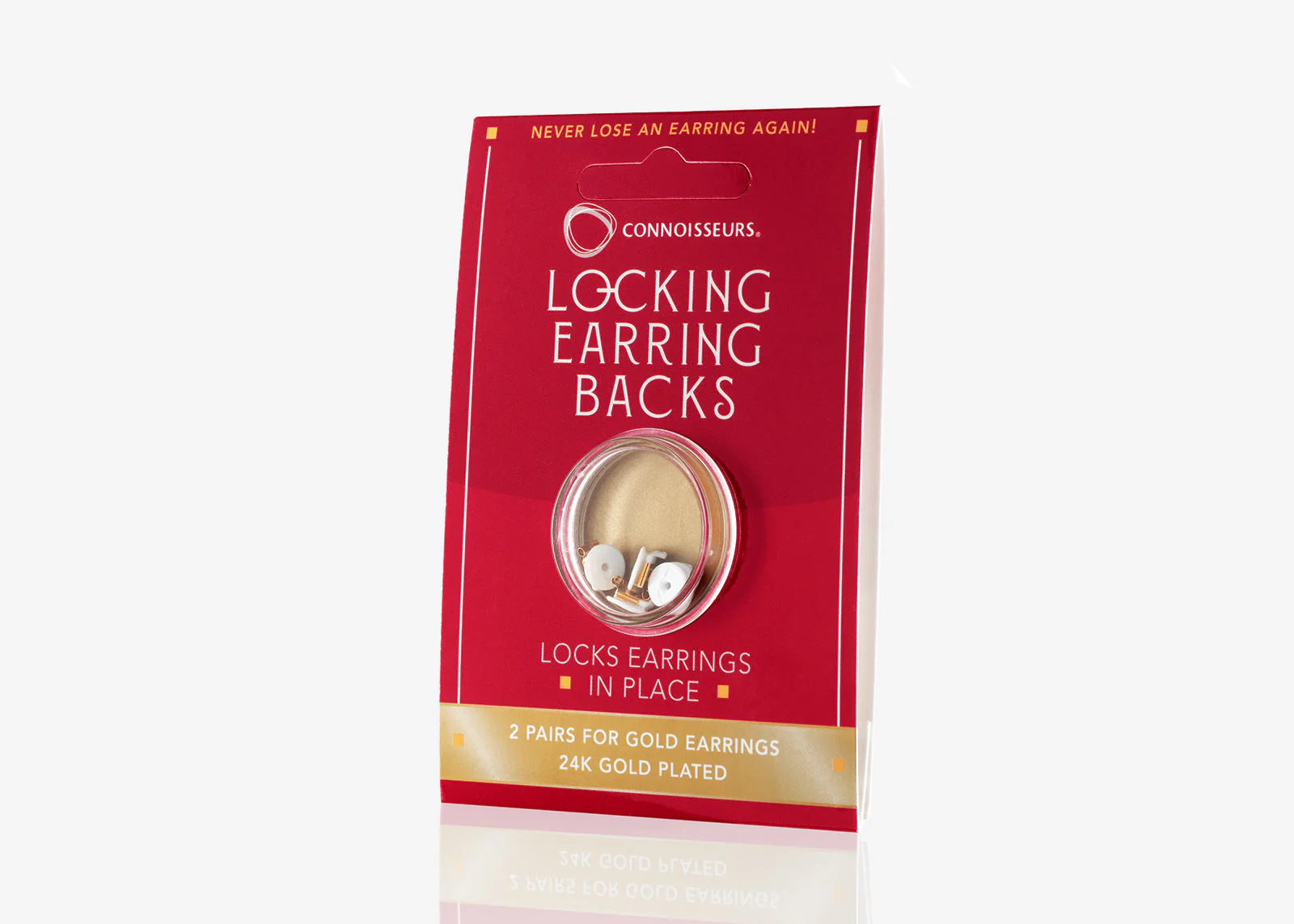 أقفال الأقراط الذهبية من Connoisseurs — مصممة لتثبيت الأقراط الثمينة بإحكام تام. تُحل مشكلة الأقفال العادية التي تنزلق وتُسبب ضياع الأقراط.